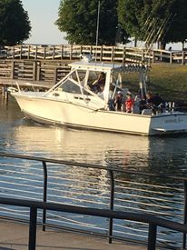My dock is located at the Port Austin village docks (the Port Austin Marina) which is straight north through the four way stop on the northern most end of Port Austin. The parking lot is public and located in front of the Harbor Point condos. The walkway in the middle of this lot will take you to a stairway down to my boat, “Mermaid Alena“.